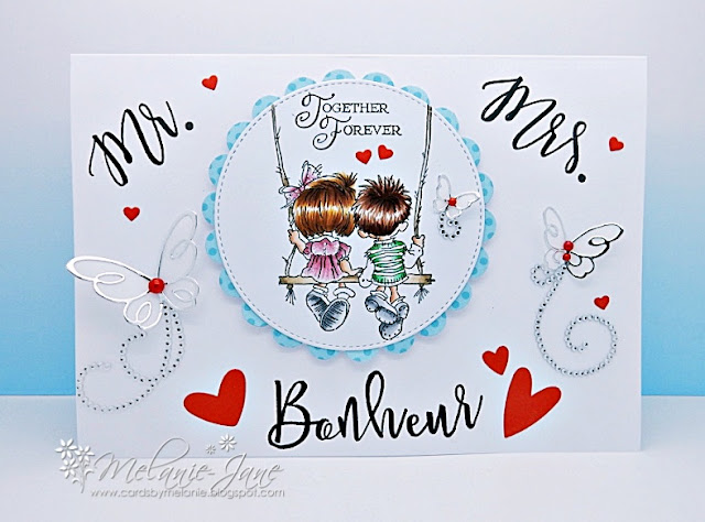 I made this card for friends who are getting married next week. I used a stamp from Lili of the Valley - Together Forever. The image is colored with Copic Markers. I love my Poppy Stamp Dies 1378 Devyn Butterfly Trio craft die + 1389 Emelia Butterfly Trio craft die. I tried to keep it clean and simple. Hope they will like it.